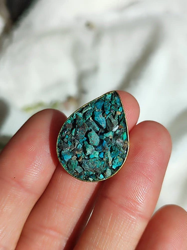 Anillo Crisocola En Granos Bronce Corao