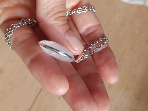 Collar de acero quirúrgico con dije de cuarzo rosa.