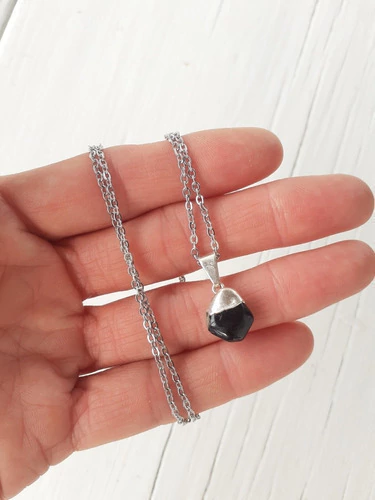 Collar de acero quirúrgico con dije de cristal natural rolado o tamboreado.