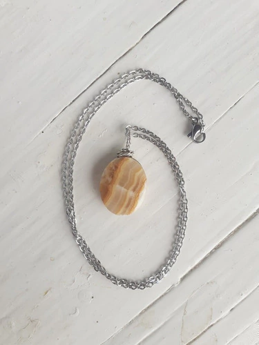 Collar de acero quirúrgico con dije de Onix natural y engarce de alpaca.