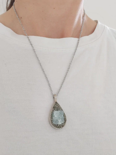 Collar Piedra Pirita Aguamarina Brilla Gota