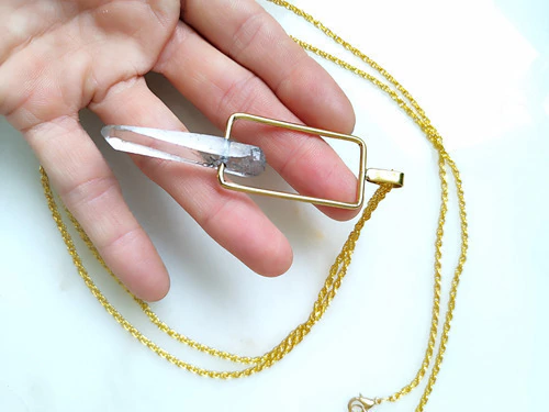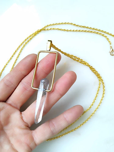 Collar Punta Cuarzo Cristal Cadena Dorada 1m