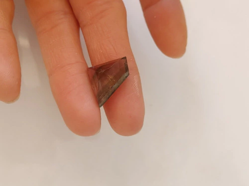 Gema facetada de 1cm de diámetro aprox. Cuarzo ahumado turmalinado (turmalina rosa y verde)
